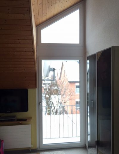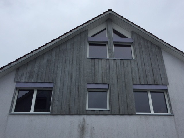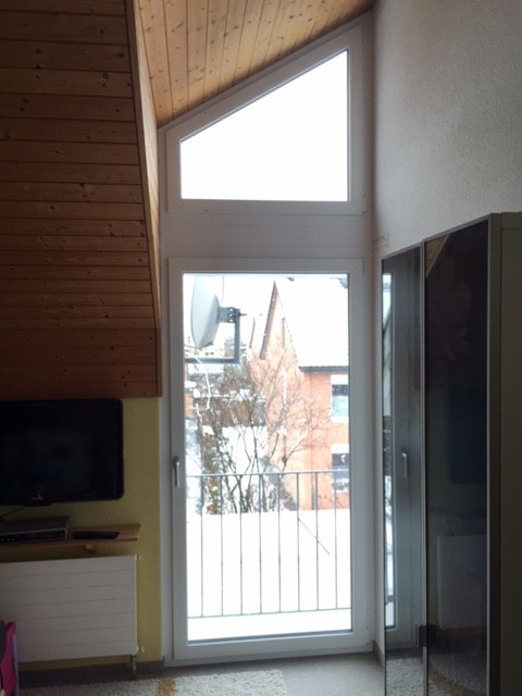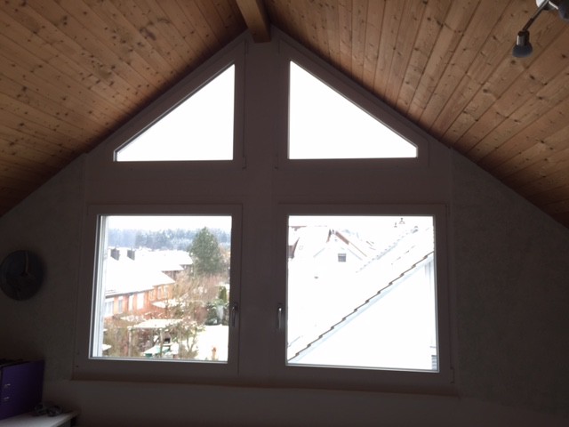 Umbau Volketswil Speziell: Fenster wurden für diverse unterschiedliche Schrägen angepasst und eingebaut. Produkt: Kunststoff-Fenster AS1Arbeiten: Umbau